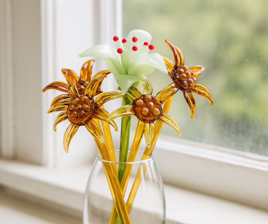 This exquisite art form features Spirit Bloom collection in deep vibrant colours and intricate patterns. Each Glass Flower is meticulously handblown by Glass masters in house.